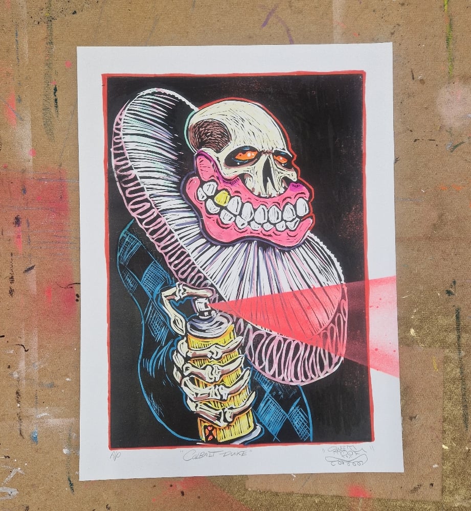 Hand embellished Linocut