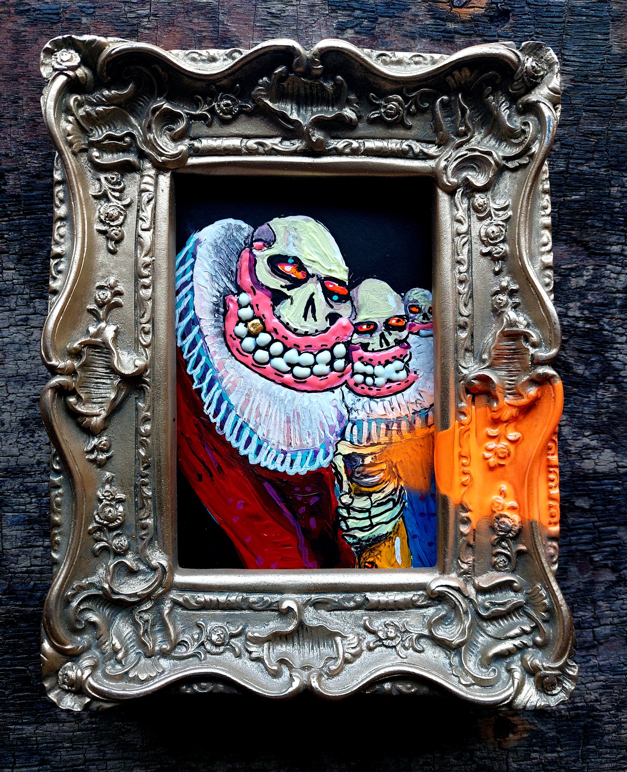 Original Framed Ruffneck acrylic enamel and spraypaint With glow in the dark teeth and gums Signed on reverse 20 x 16 cm Signed on reverse