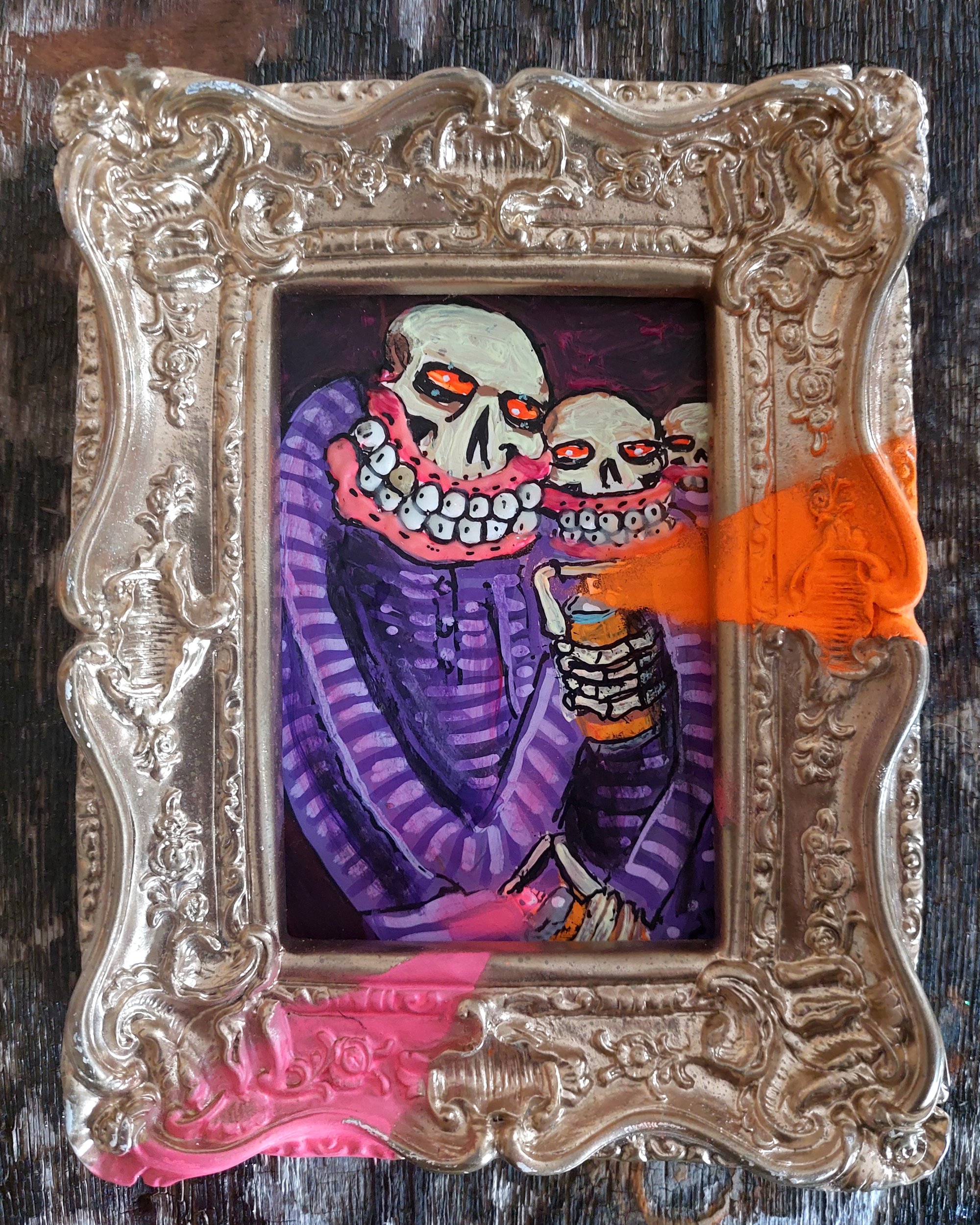 Original (Chain Gang series) Framed acrylic enamel and spraypaint With glow in the dark teeth and gums Signed on reverse 20 x 16 cm Signed on reverse