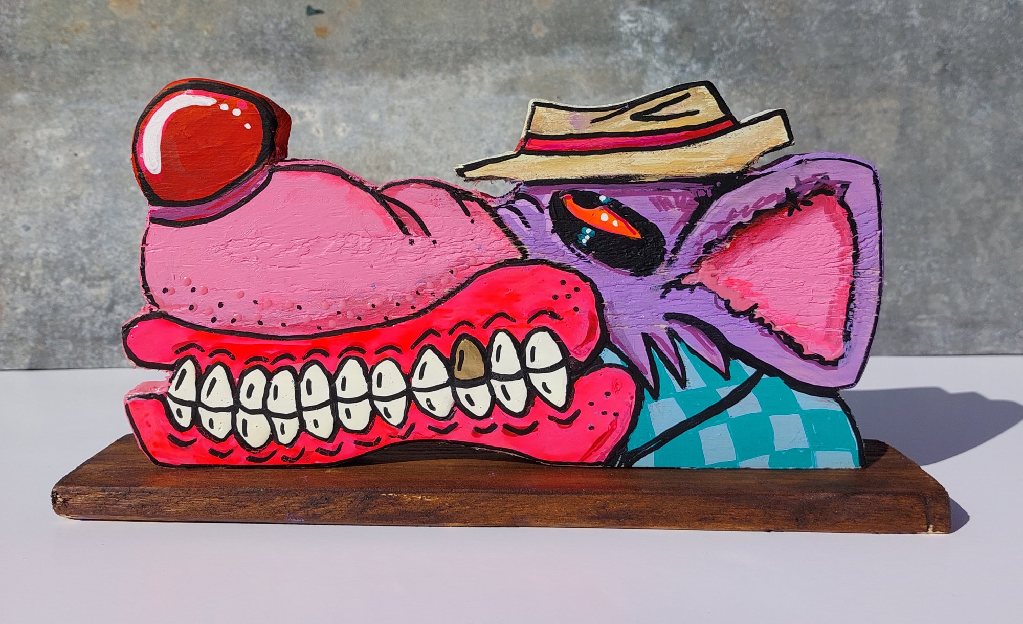 Original Dirty Rat Free standing wooden cut out Acrylic & Enamel With gold bling 36 x 18 cm Signed on reverse