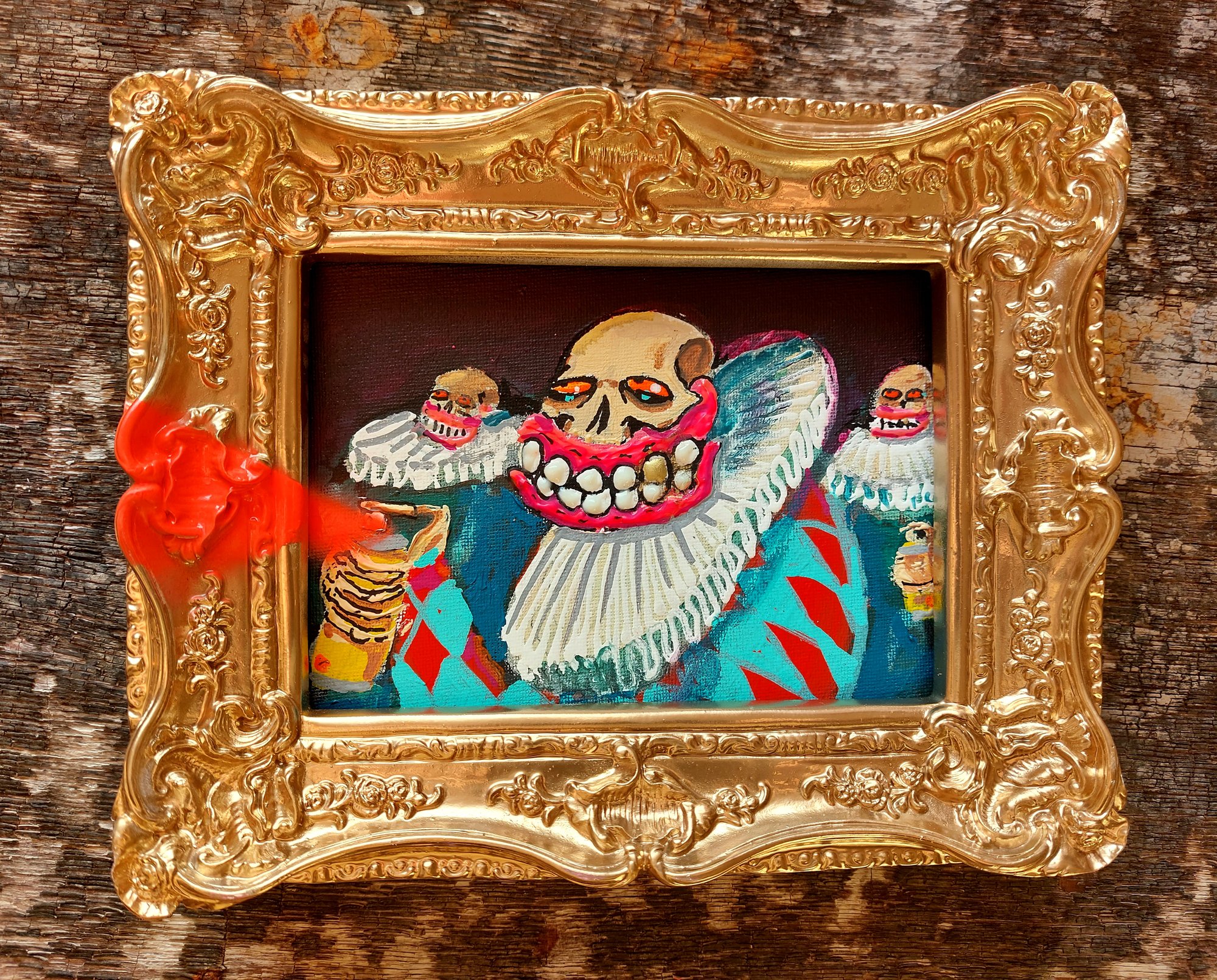 Original Framed Ruffneck Acrylic and enamel Spraypaint With glow in the dark teeth Signed on reverse 24 x 19 cm