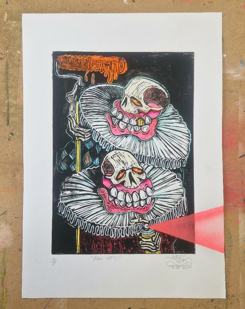 Hand embellished Linocut