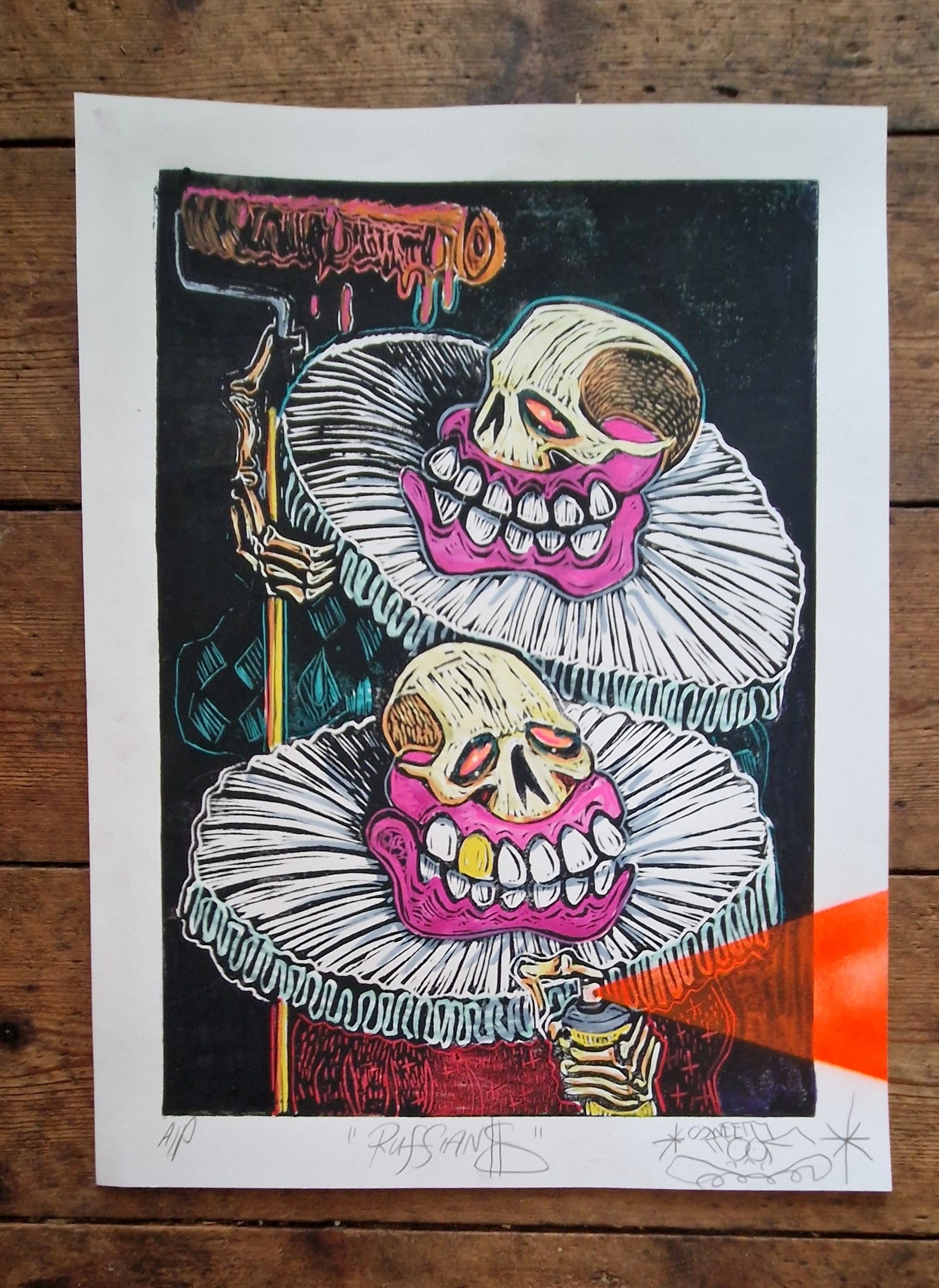 Ruffians Embellished Linocut AP