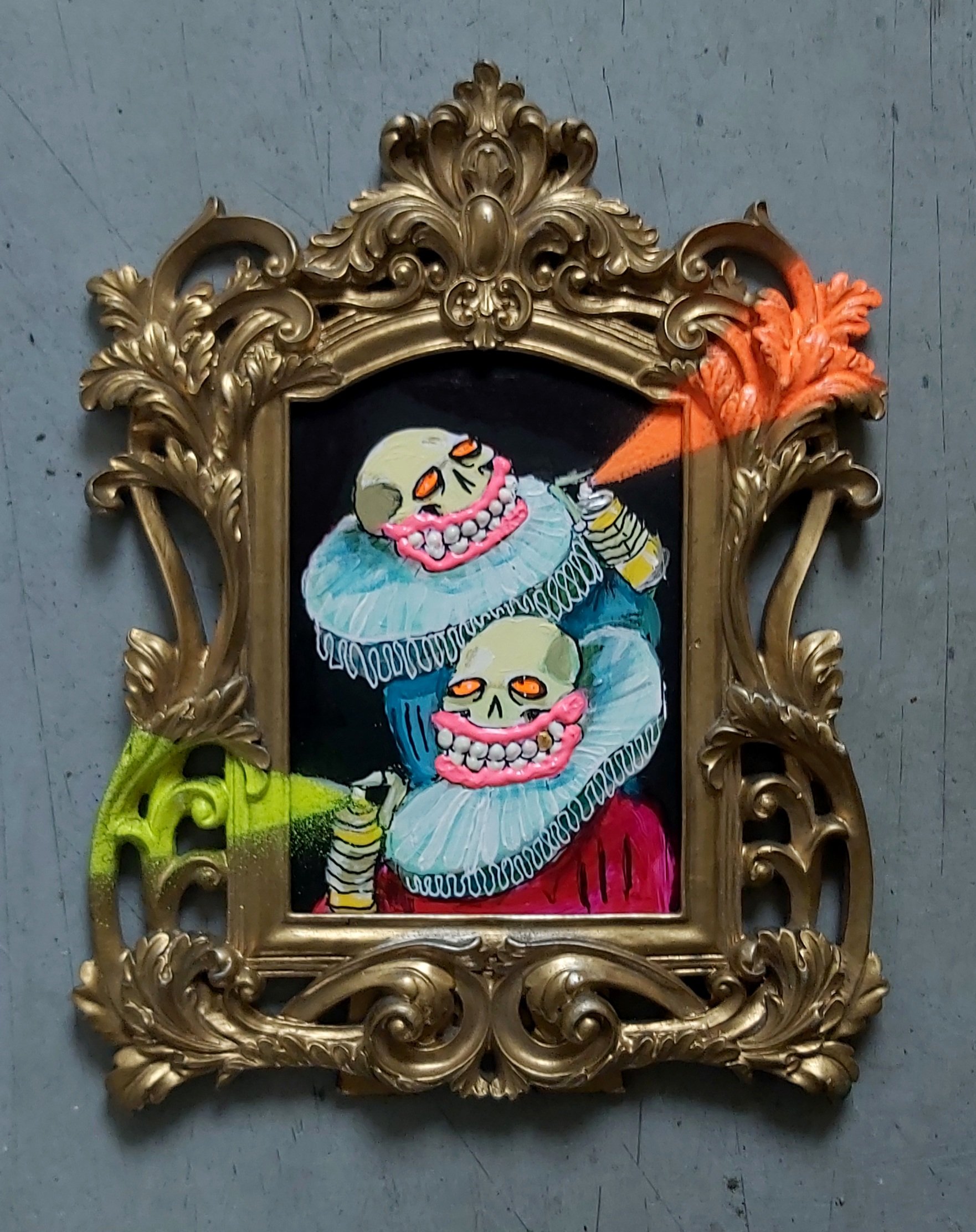 Original Framed Ruffneck Acrylic enamel and spraypaint With glow in the dark teeth Signed on reverse 30 x 24 cm