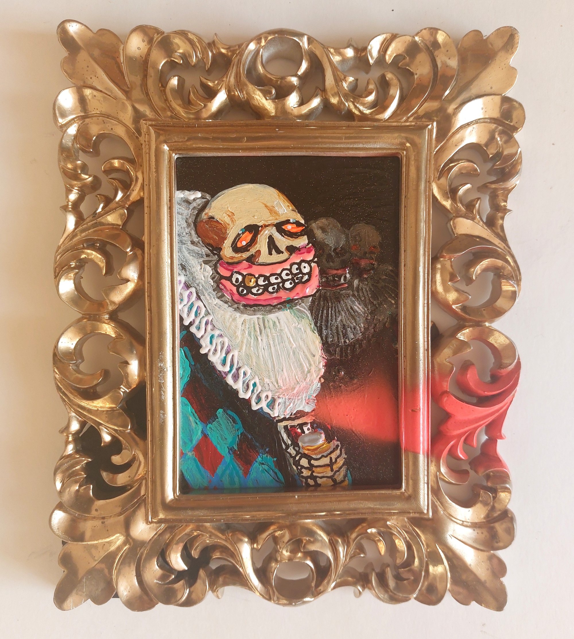 Original Framed Ruffneck Acrylic enamel and spraypaint With glow in the dark teeth and gums Signed on reverse 21 x 17 cm