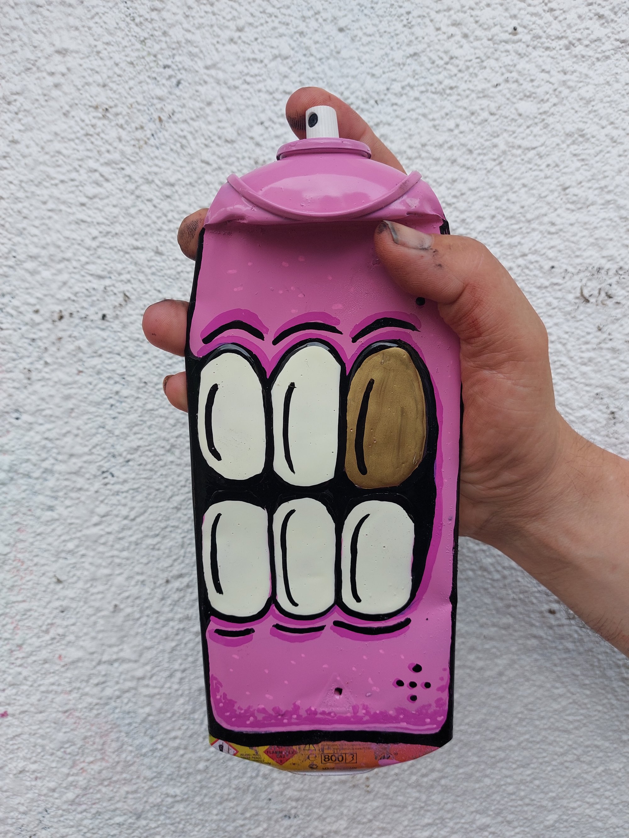 Original XL Chomps Flattened spraycan No pressure Spraypaint Impasto teeth and enamel Signed on reverse 26 x 10 cm